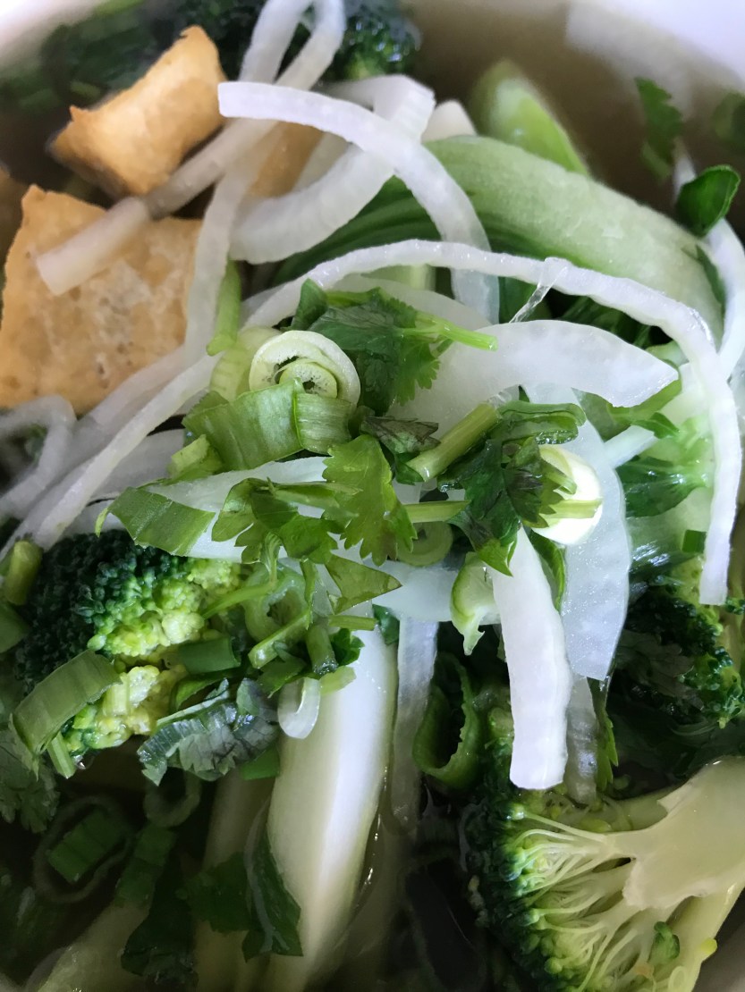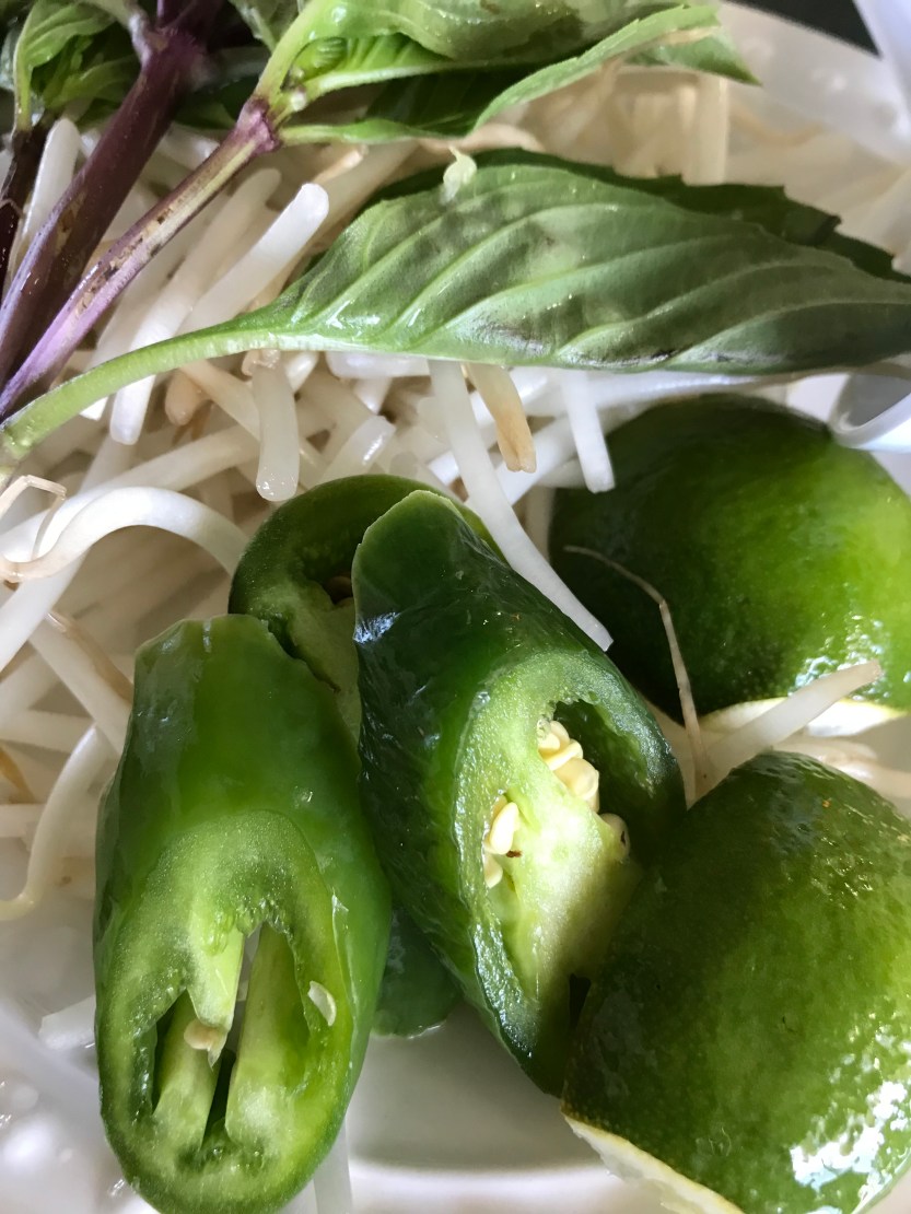 If you aren’t familiar with Pho, it’s a Vietnamese soup filled with noodles, meat, and most importantly the rich broth. It comes with bean sprouts, lettuce, slices of lime, mint, cilantro and chili’s on the side. If you are a vegetarian it comes full of baby bok choy, broccoli, onions, tofu and a broth so layered with flavor you don’t miss the meat. Though I’m not vegetarian, it’s my favorite when having pho. You control the level of heat, and know the chili packs a spicy but not overwhelming punch.
