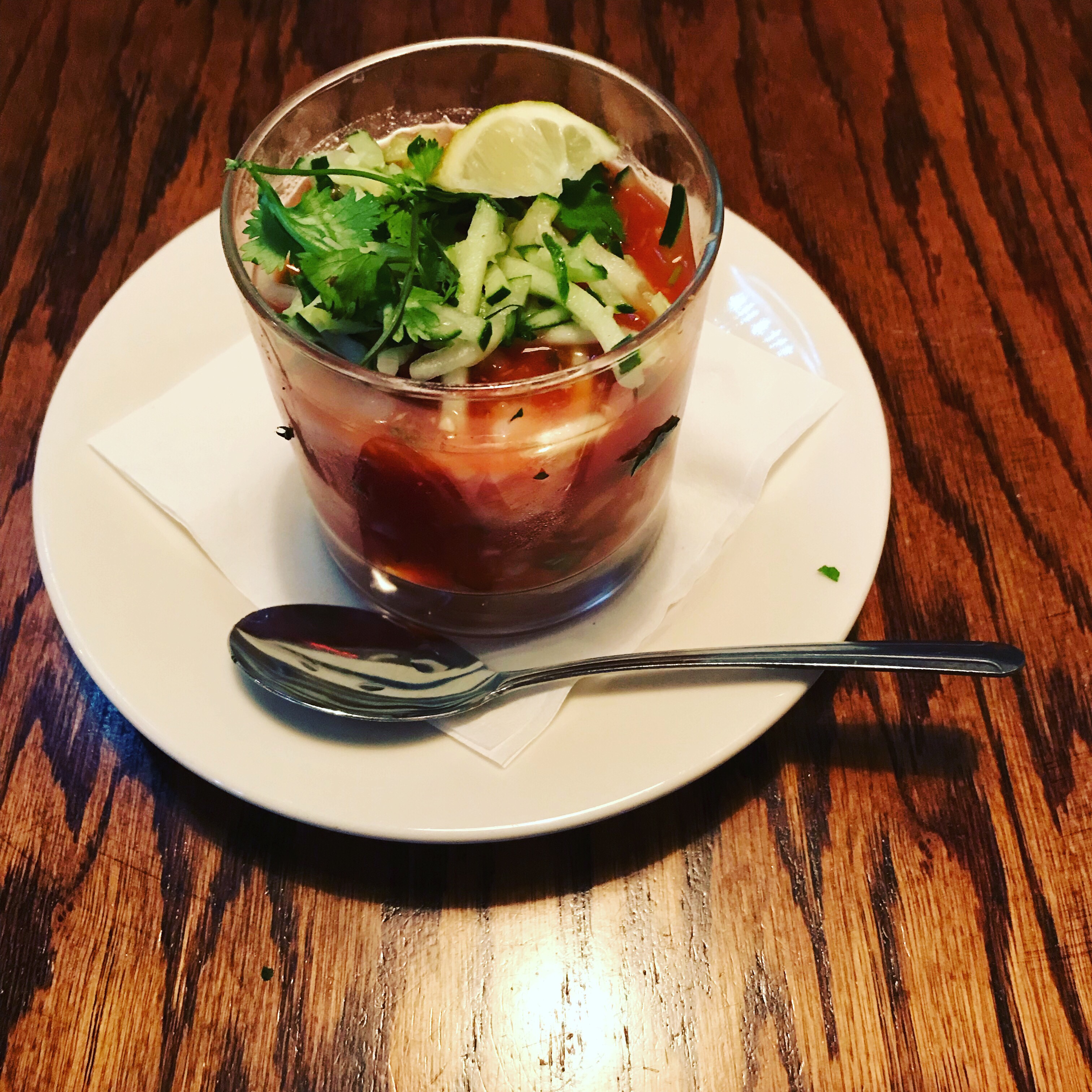 Gazpacho is always a welcome sight during the hot summer months in Georgia. This one didn’t disappoint, full of shrimp, cucumber and lime for added freshness.
