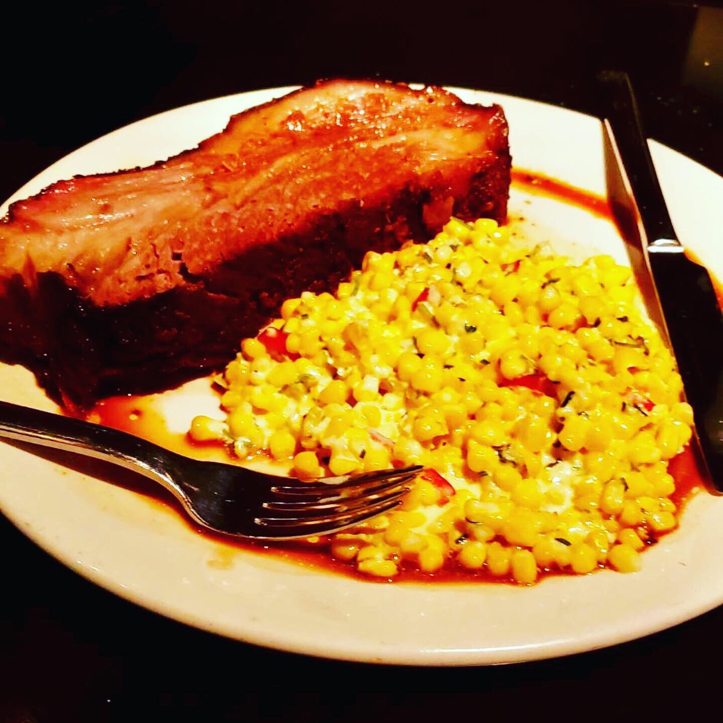 If beef is your pleasure, the Smoked Brisket is full of flavor and tender. It’s served with corn that’s the perfect pair, but feel free to ask for the green beans if you prefer a little green on your plate.