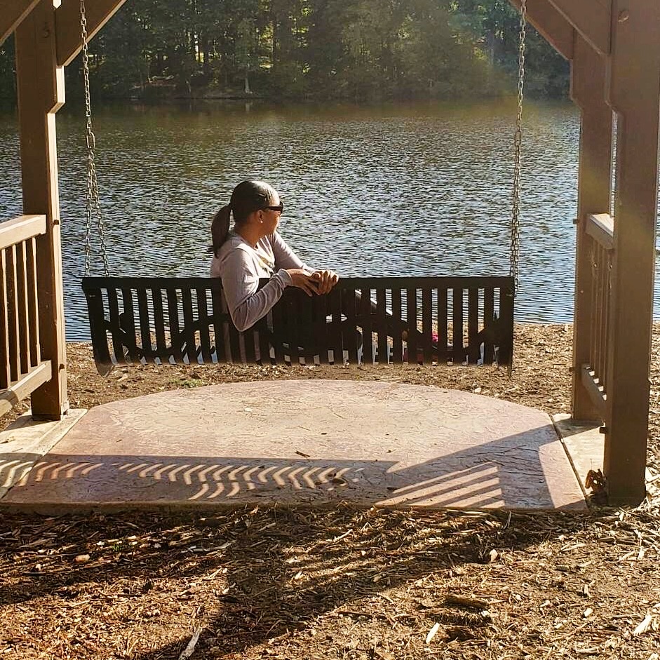 My fellow writers and photographers, this is a perfect spot in any light to write, reflect and enjoy the changes of scenery based on the position of the sun. Spend some time lounging in the swing or sitting on the bank.