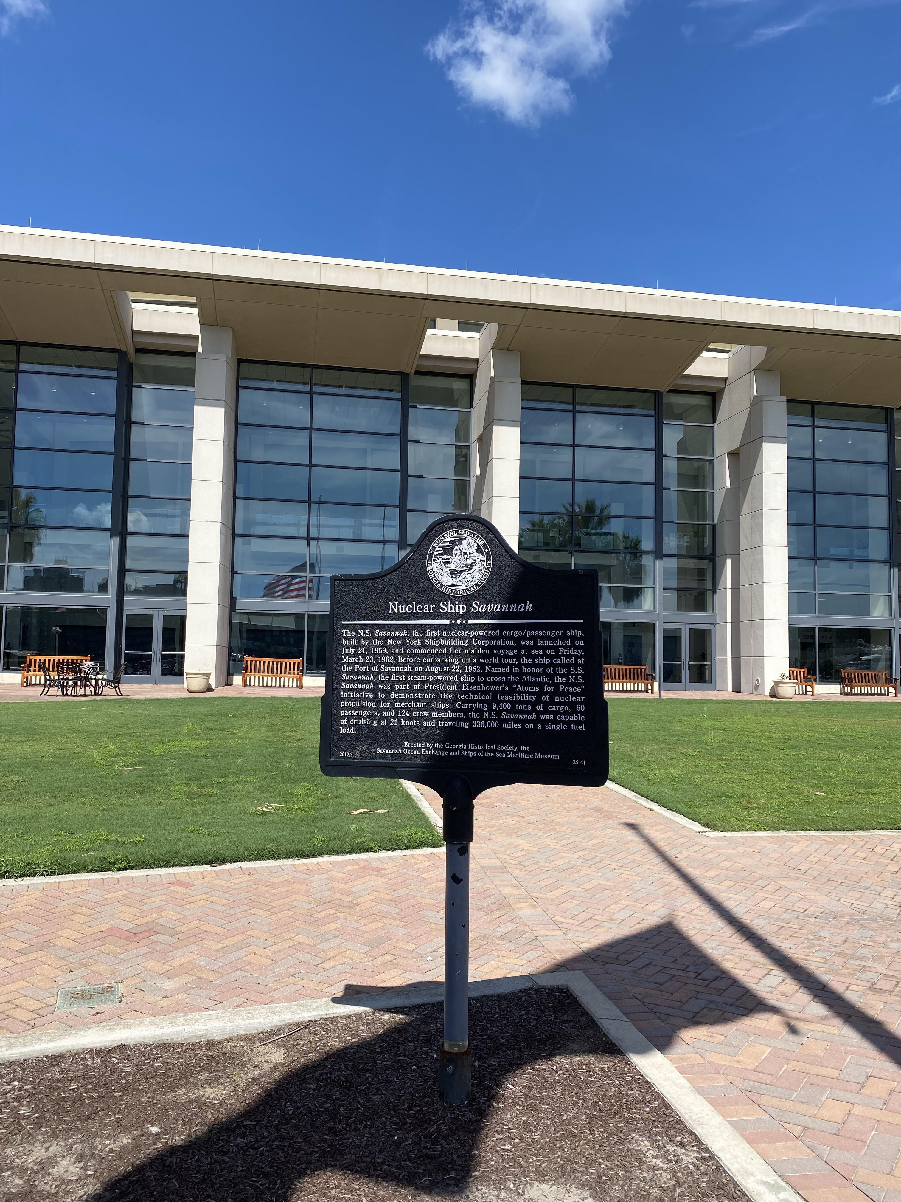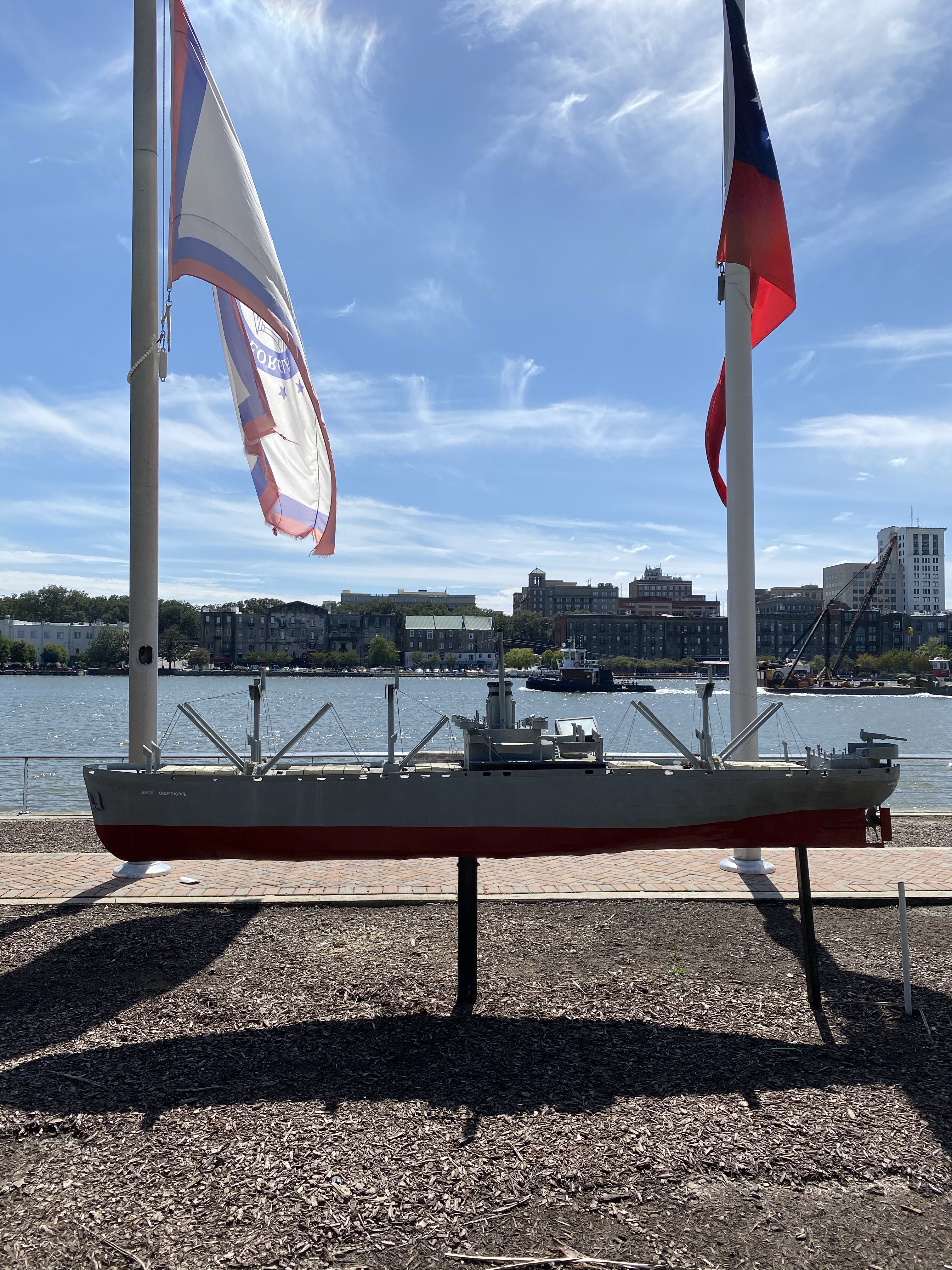 As you head out to explore, the ferry runs from the dock in front of the hotel, every 20-30 minutes depending on the time of day and breaks for lunch. Before you cross the river, check out the Naval historic markers directly in front of the convention center. Spend about 10 minutes reading the markers and looking at the replicas that provide a snippet of maritime history about the N. S. Savannah and the S.S. James Oglethorpe.