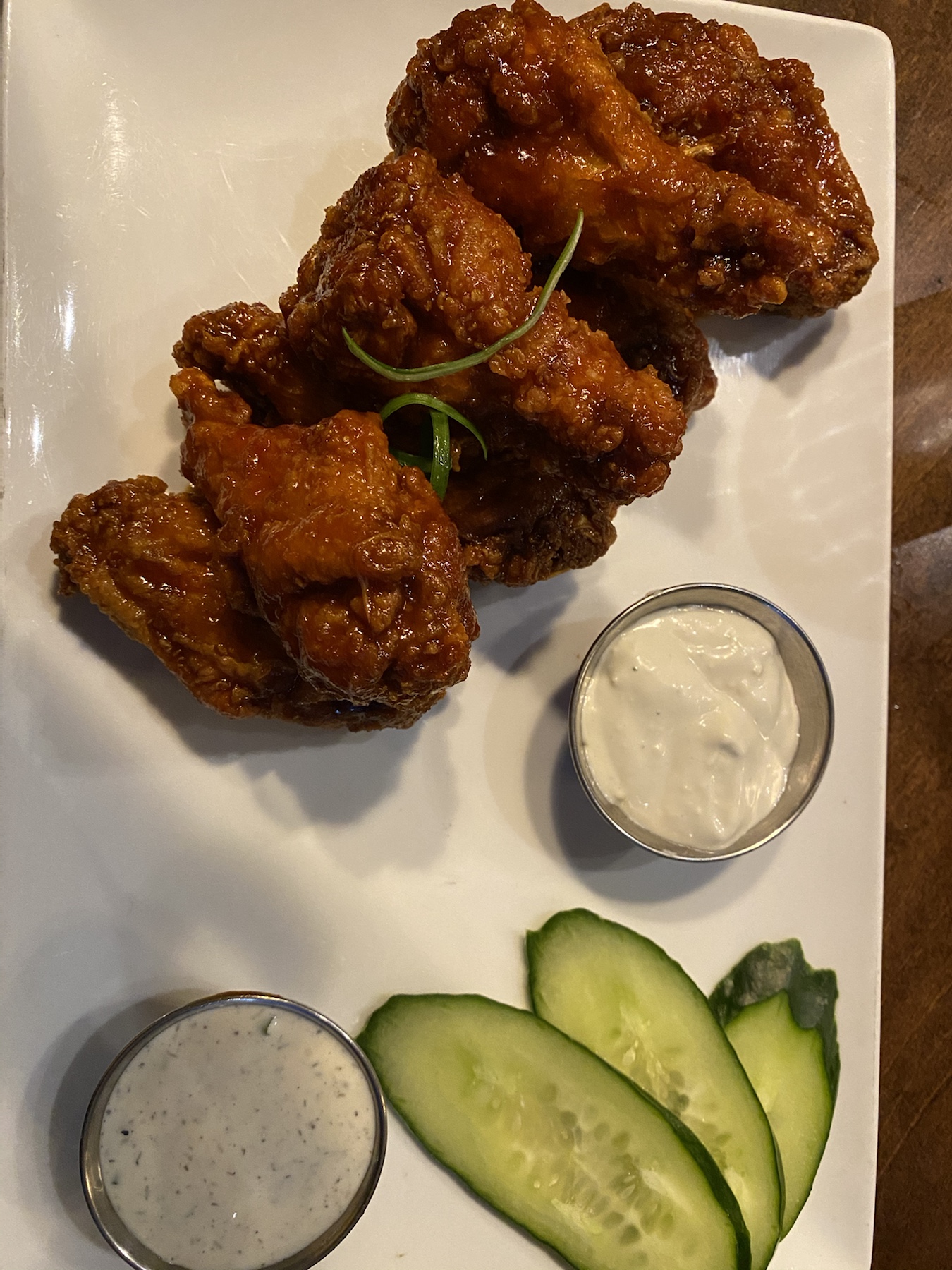 Not looking for a full meal I ordered the wings, guys, order the damm wings! The GOCHU I.P.A. Wings are fried crisp and coated with a savory,sweet & spicy fermented gochujang pepper sauce, this leaves the meat tender, full of flavor and a sticky crunch that makes you lick your fingers. My vegan friends, there is also an option for the cauliflower, order it, no they aren’t “chicken” because I don’t believe in acting like a vegetable is meat, but they are just as delicious, I stole a few off of another plate just for you 😘