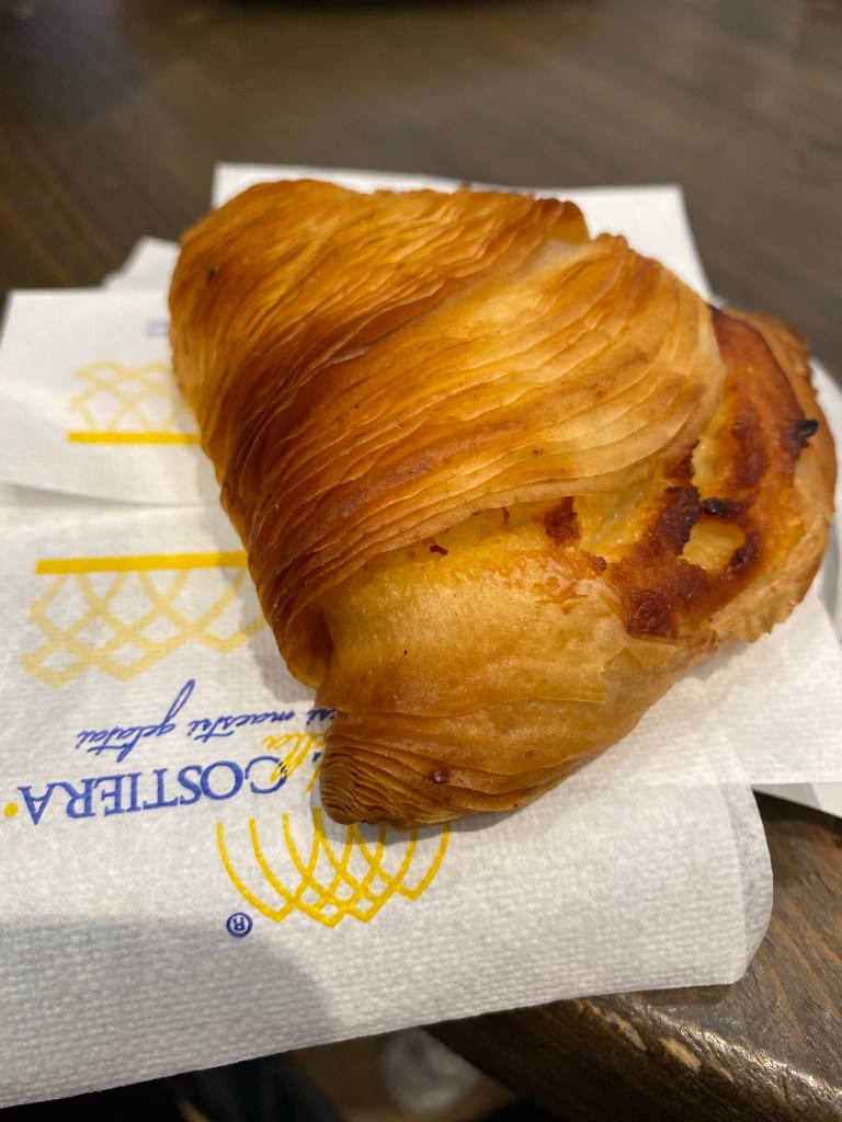 I have no idea what this pastry is called, I did a point and pay LOL, but it was a crisp flaky something with mascarpone cheese on the inside and a hint of lemon. Perfect pairing with my cappuccino, yes you will see all types of focaccia topped with everything from sardines, tuna or prosciutto, try it all!